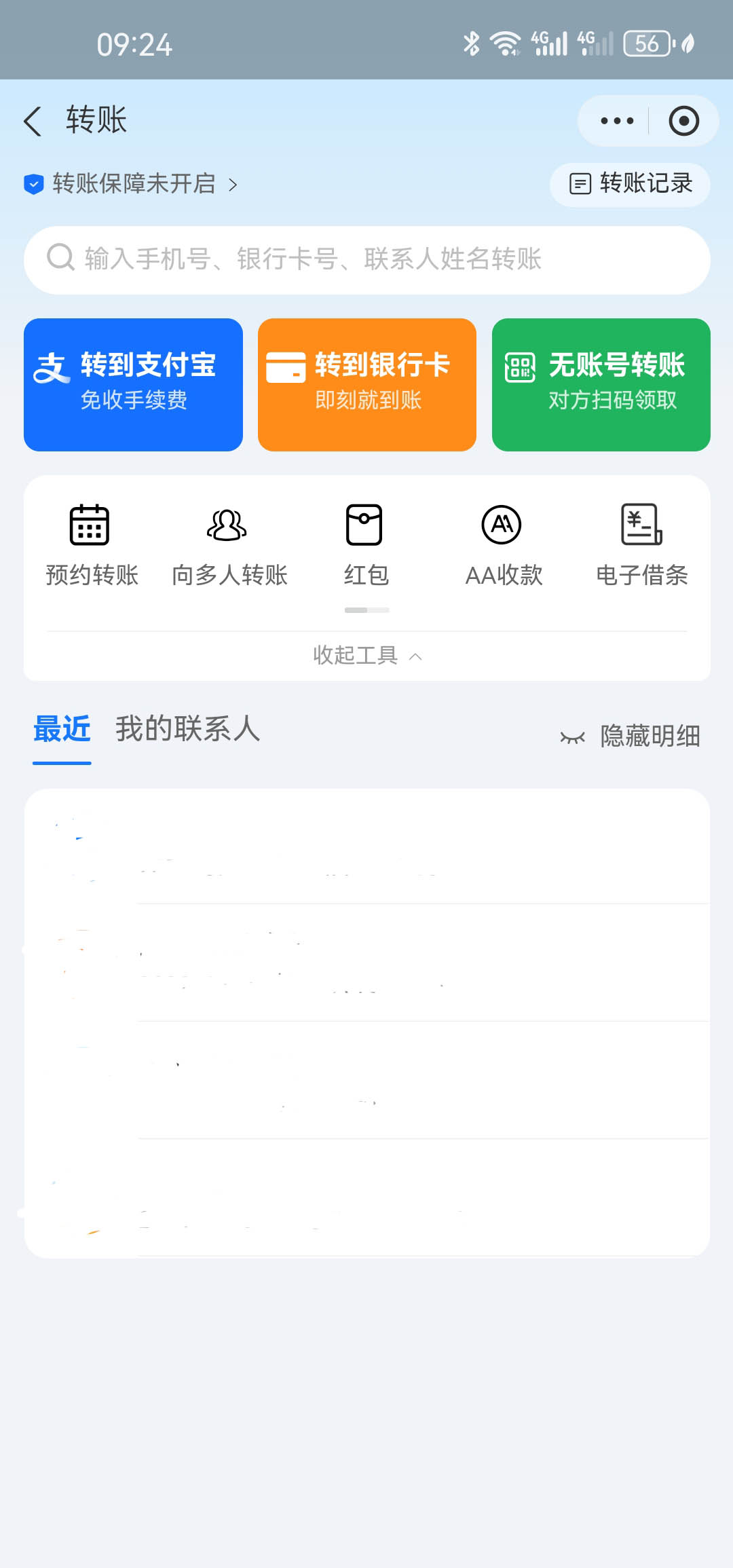 1、打開手機支付寶賬戶:,點擊“轉賬”->“轉到支付寶”。(系統默認即時到賬交易付款)