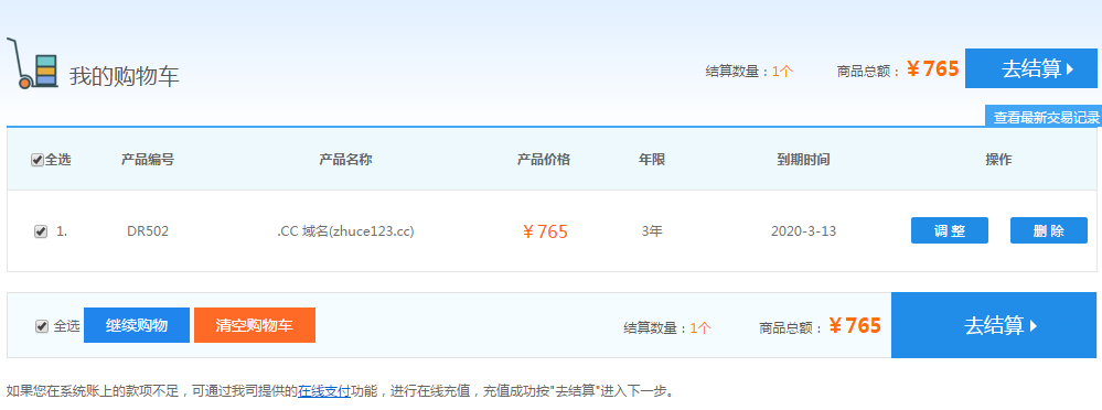 域名屬于特殊產品切具有先注先得、唯一性等特性,添加到購物車并不等于購買成功,只有最終付款成功并看到域名管理中存在該域名記錄才算注冊成功。