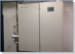 空調(diào)系統(tǒng)采用世界先進(jìn)意大利頂級(jí)技術(shù)的HIROSS機(jī)房專用空調(diào)。空調(diào)設(shè)備單臺(tái)顯冷量55.4KW,溫度控制范圍23 2℃,濕度控制 范圍55 10%,具備換氣、保持室內(nèi)正壓、防塵功能